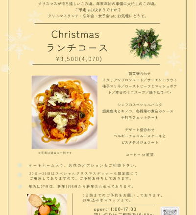 12月24日(木)、25日(金)はクリスマスメニューです。