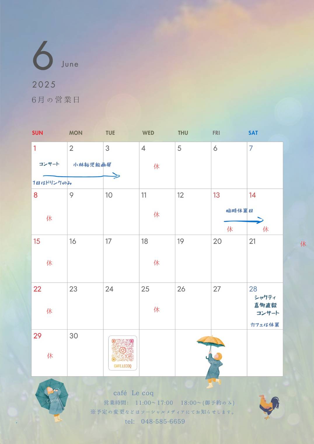 6月28日(土)はホールでコンサート開催の為、貸切営業となります。