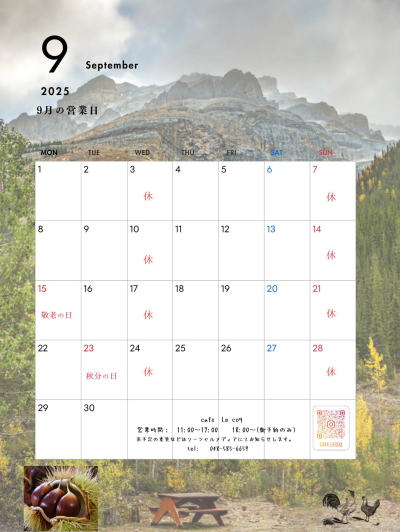 ■11月4日(月)は3日貸切営業の振替休日とさせていただきます。